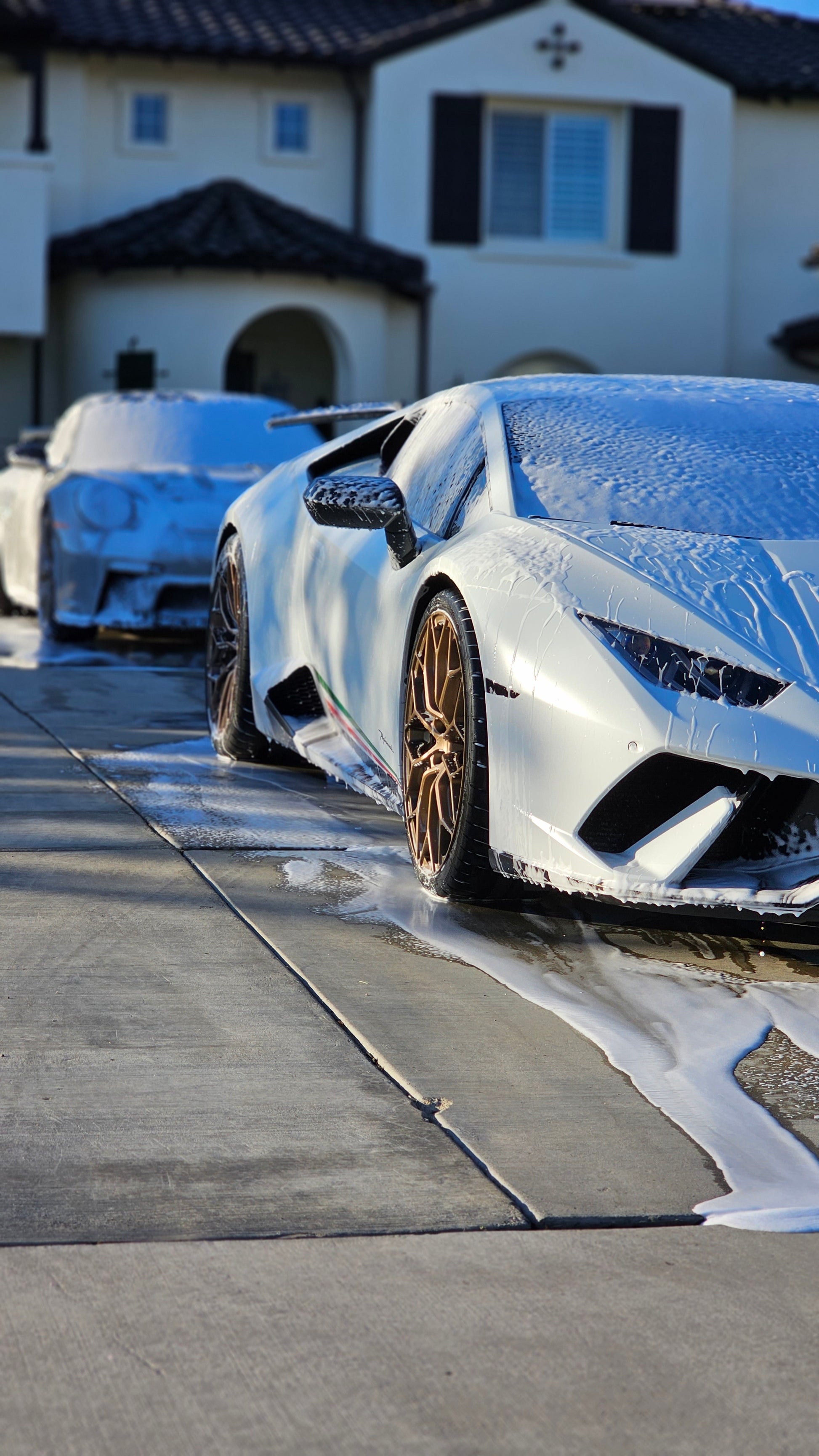 - Exterior Detailing: A thorough pre rinse, PH neutral foam application, hand washing with an unused microfiber towel, final de-ionized water rinse, and blow drying to prevent swirl marks.